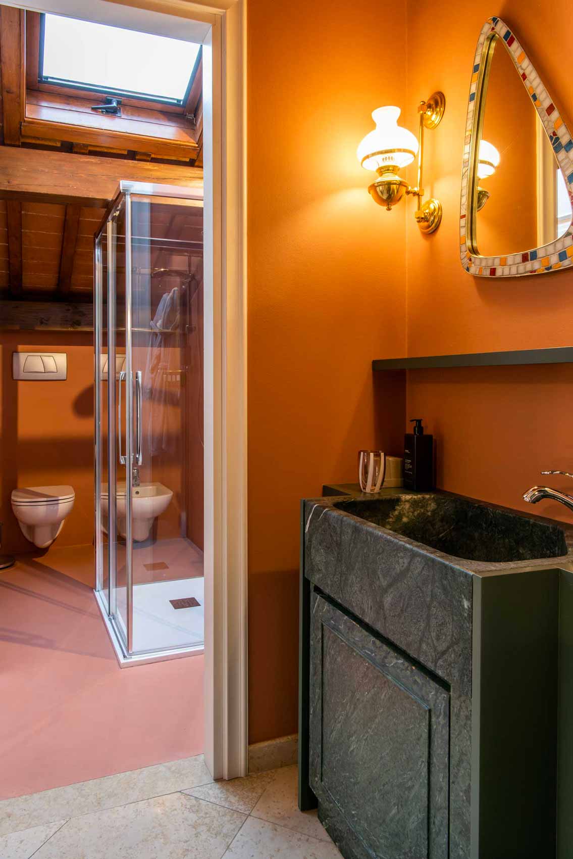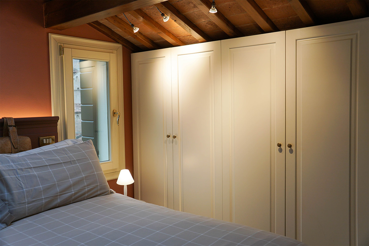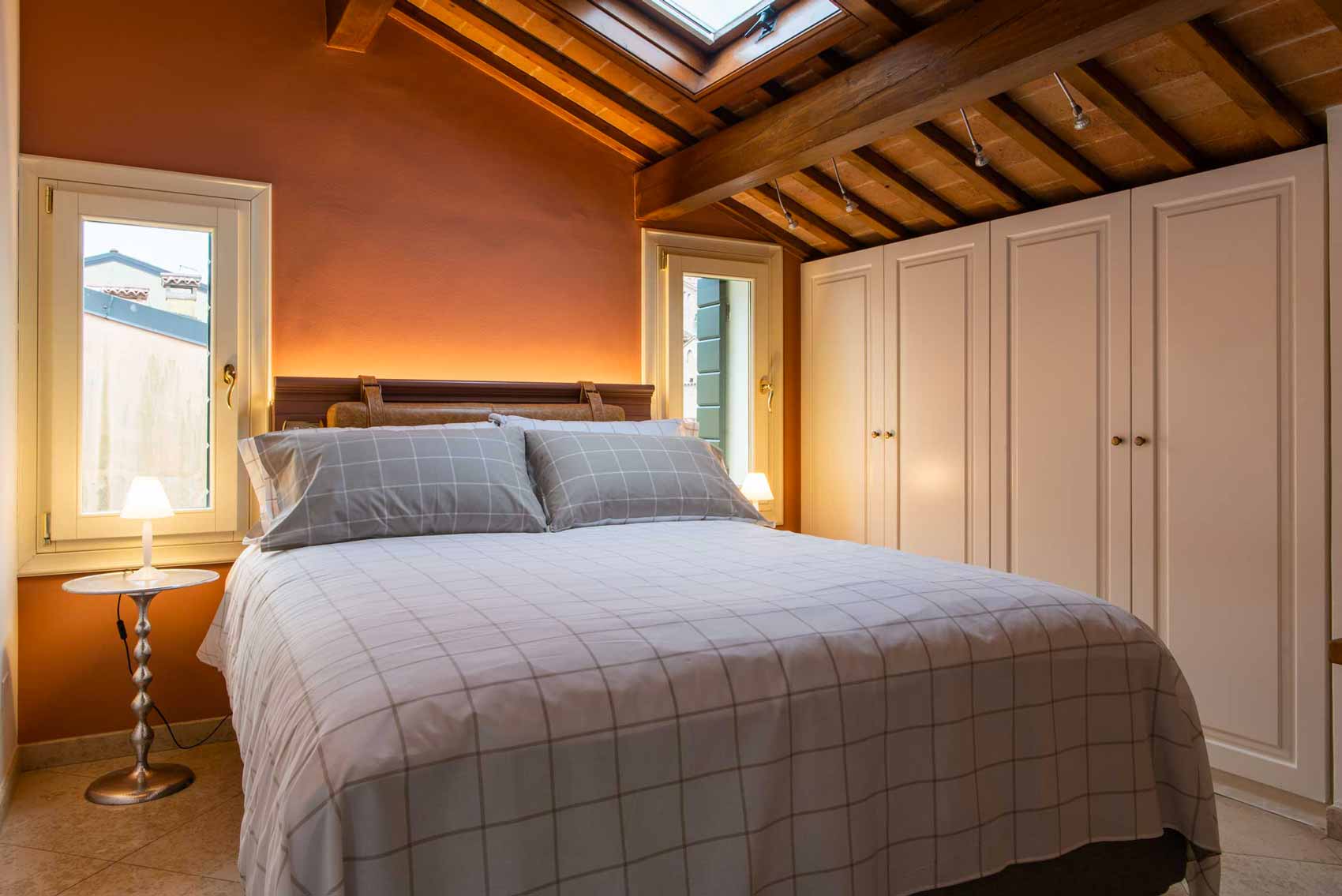 Compatta e situata nella suggestiva mansarda, la camera è ottimizzata in ogni dettaglio.