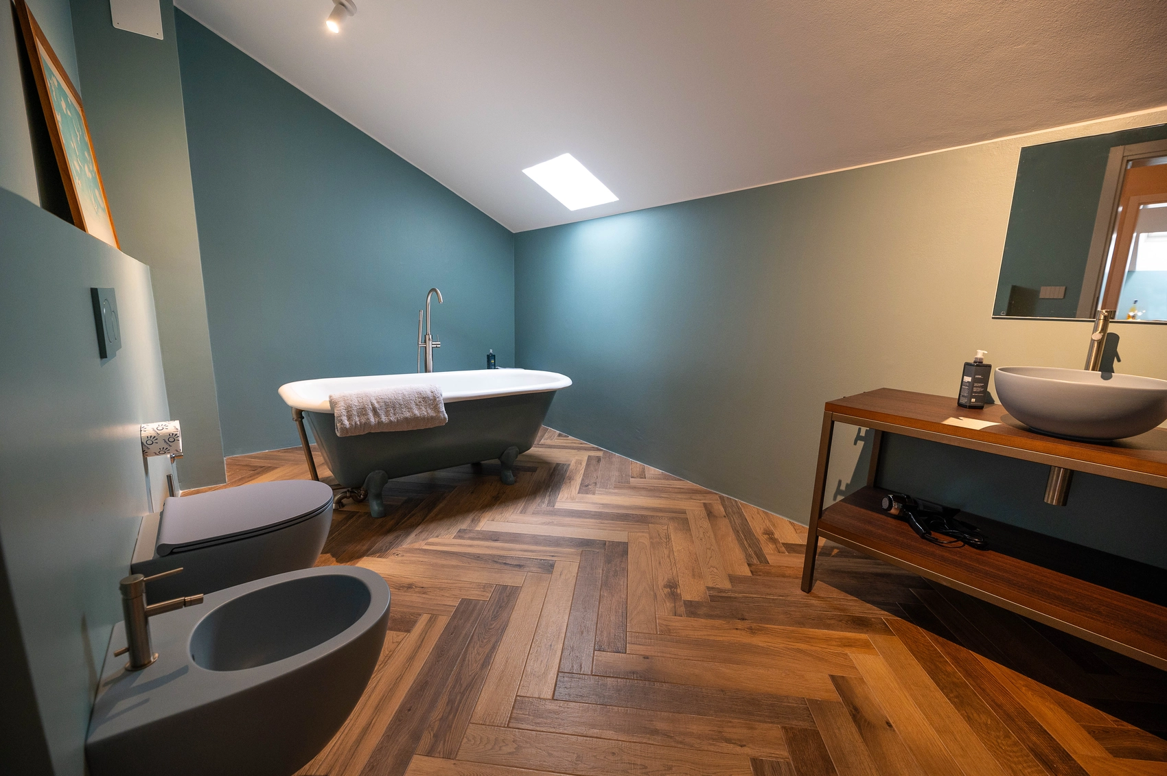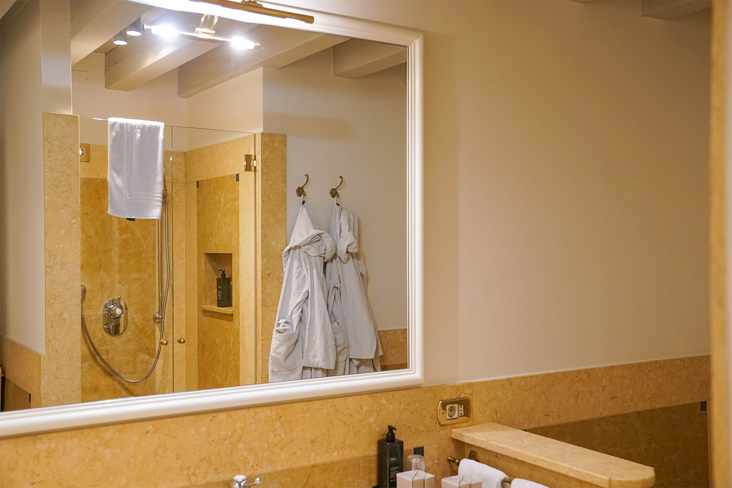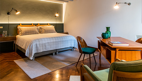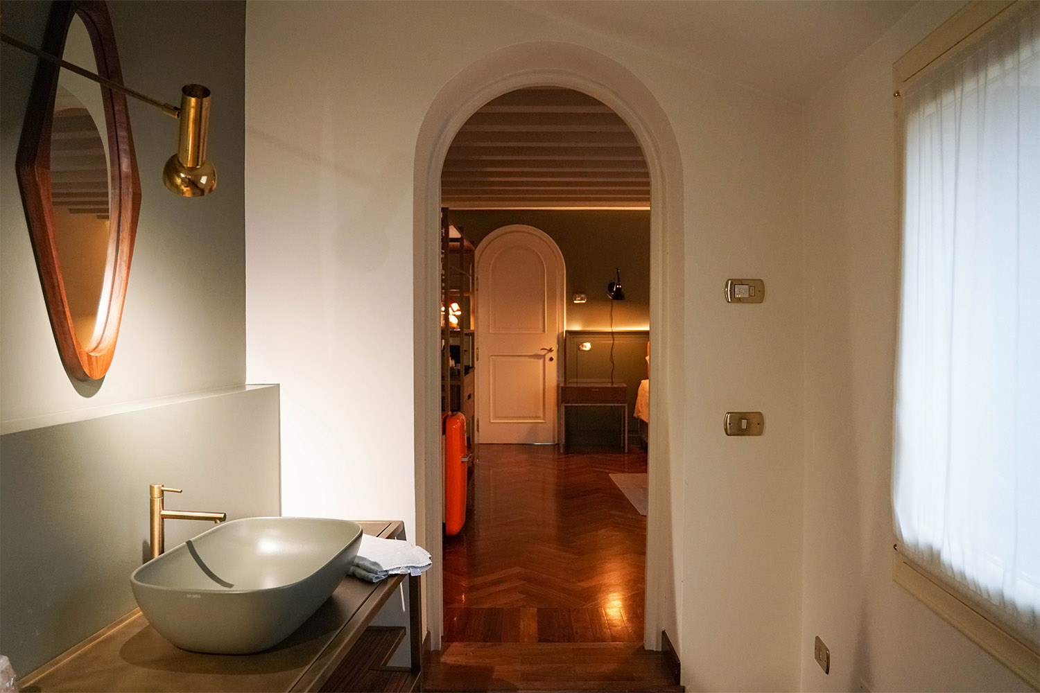 La nostra suite deluxe: tutto lo spazio di cui hai bisogno, arredi di design, pavimento in parquet, bagno king-size e un’imperdibile vista sulla Chiesa degli Eremitani.